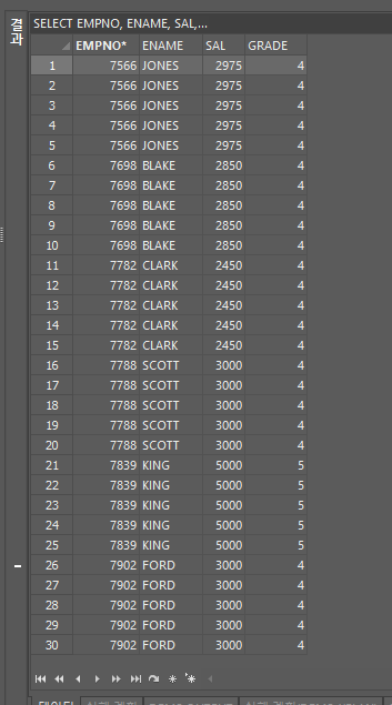 SALGRADE 테이블 때문에 걱정했는데, 다행히 결과 다 똑같이 출력 됌