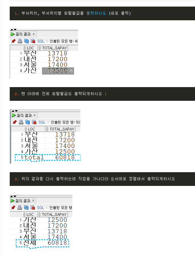 오라클 JOIN ,UNION ,UNION ALL (집합연산자), 연습문제 본문