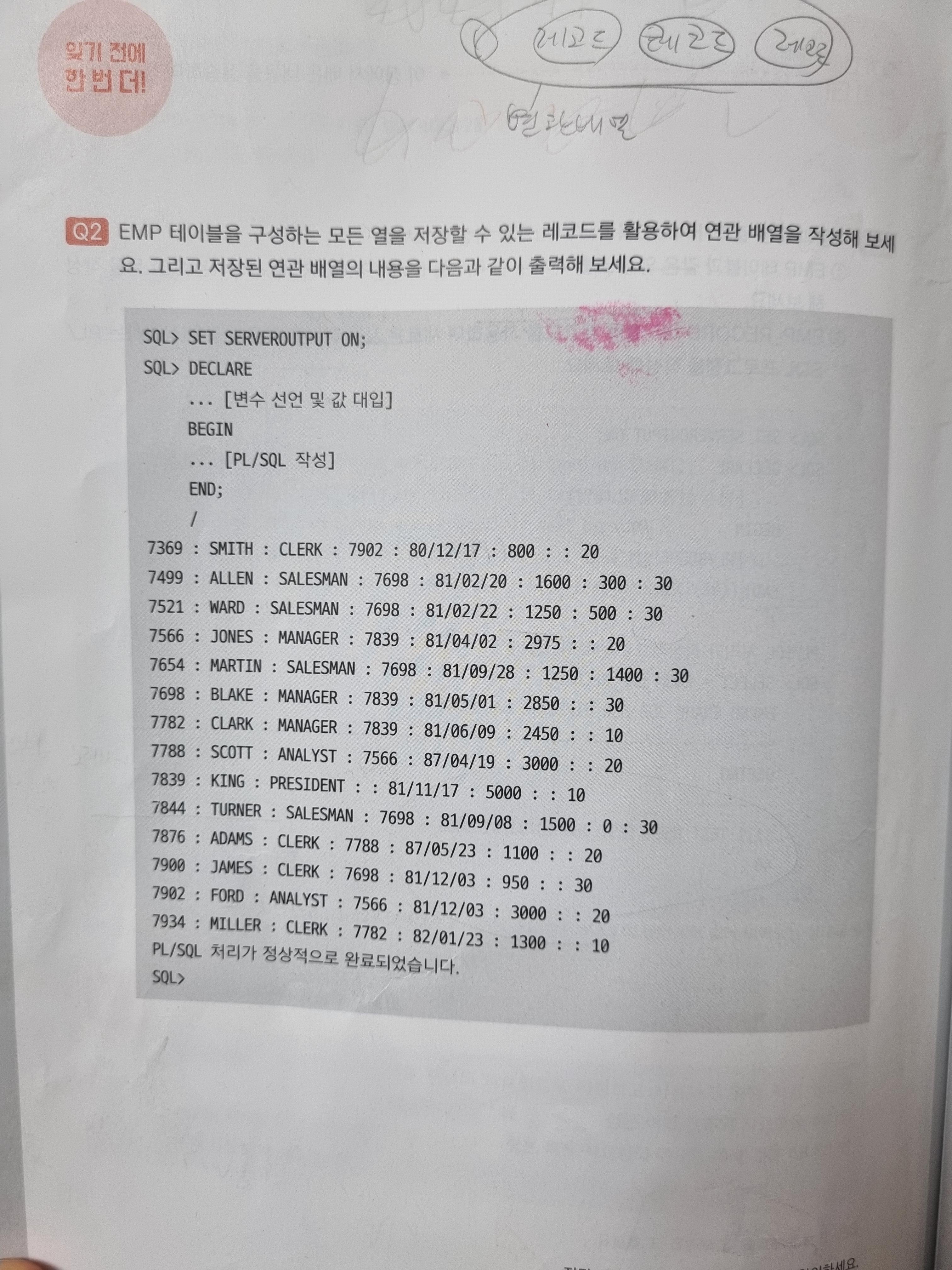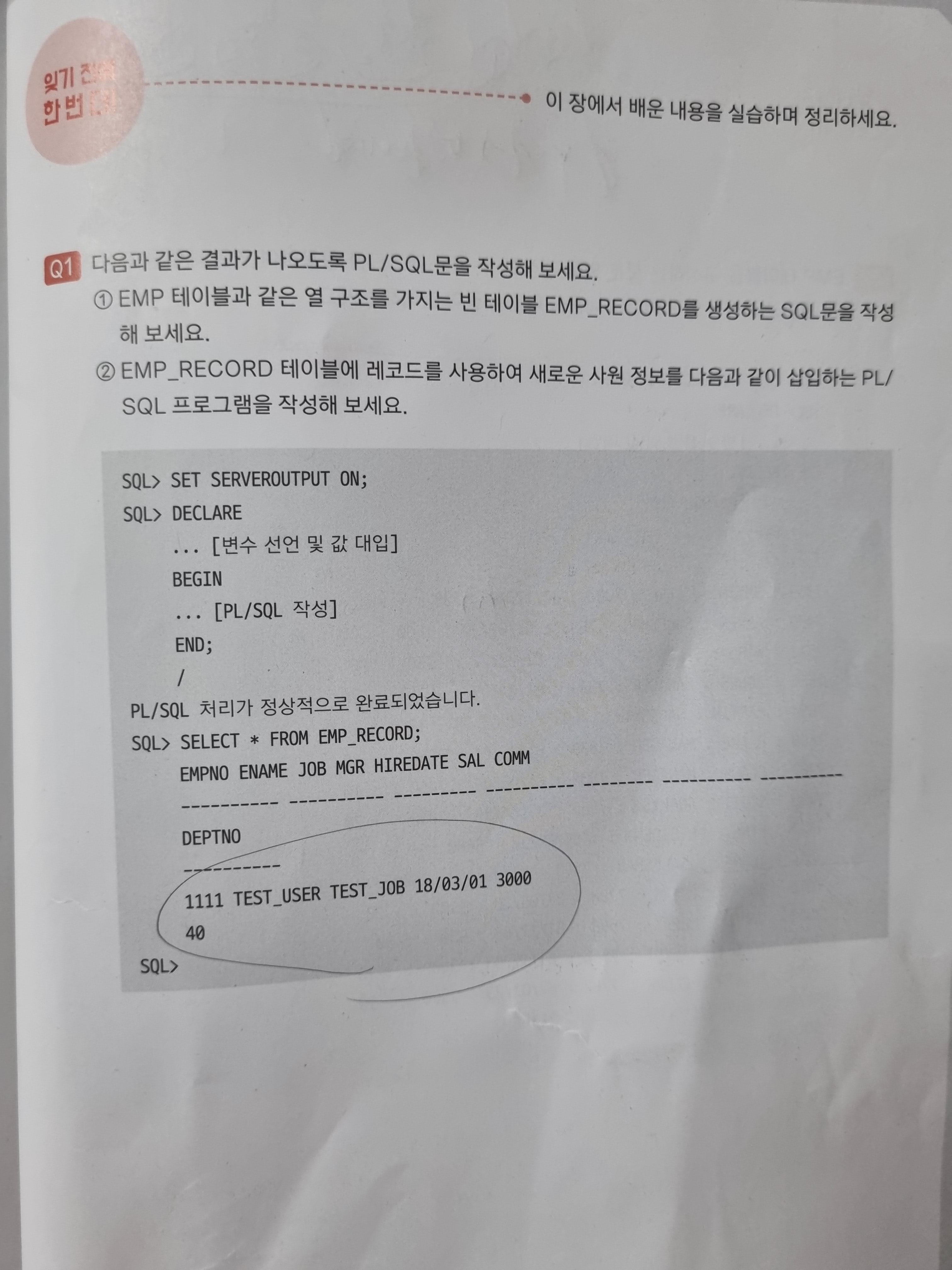 Do it! 오라클로 배우는 데이터베이스 입문 : 연습문제 (레코드,컬렉션) 본문