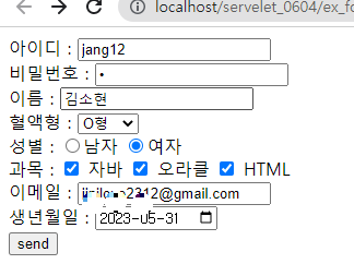 폼에 정보를 입력하면, 자바에서 설정한 조건식에 따라 브라우저 창에 출력이 된다.