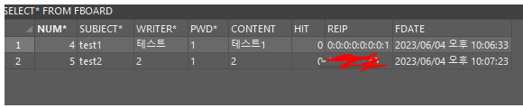 // 바인딩하기 제목, 작성자, 비번, 내용, ip ?순서임
