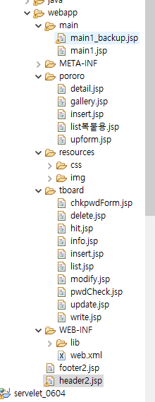 webapp 폴더 안에 늘어놨던 Fboard jsp파일들은 폴더를 만들어서 넣었고, 이번 포스팅의 갤러리 파일들도