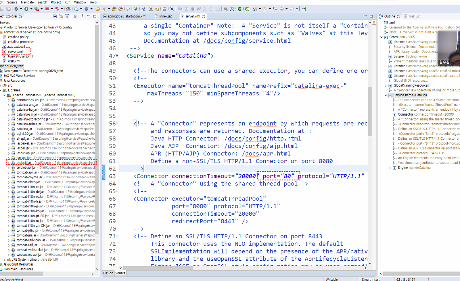 톰캣 설정이 끝난 후에 서버에 톰캣이 생긴다 거기에 있는 server.xml 파일 수정!!