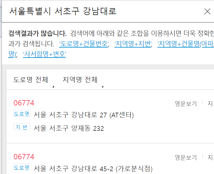 --주소찾기 (확인버튼을 누르면 주소 찾은거 + 내가 입력한 상세 주소가 합쳐져서 입력된다)