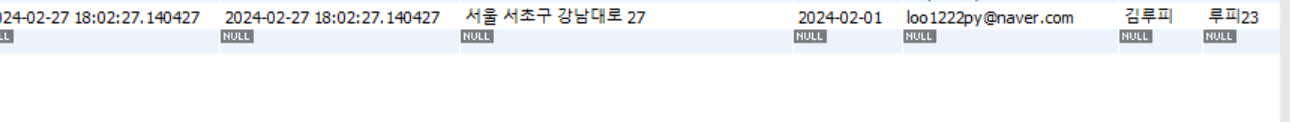 mysql workbench로 멤버 테이블에 회원이 새로 잘 insert 되었는지 체크