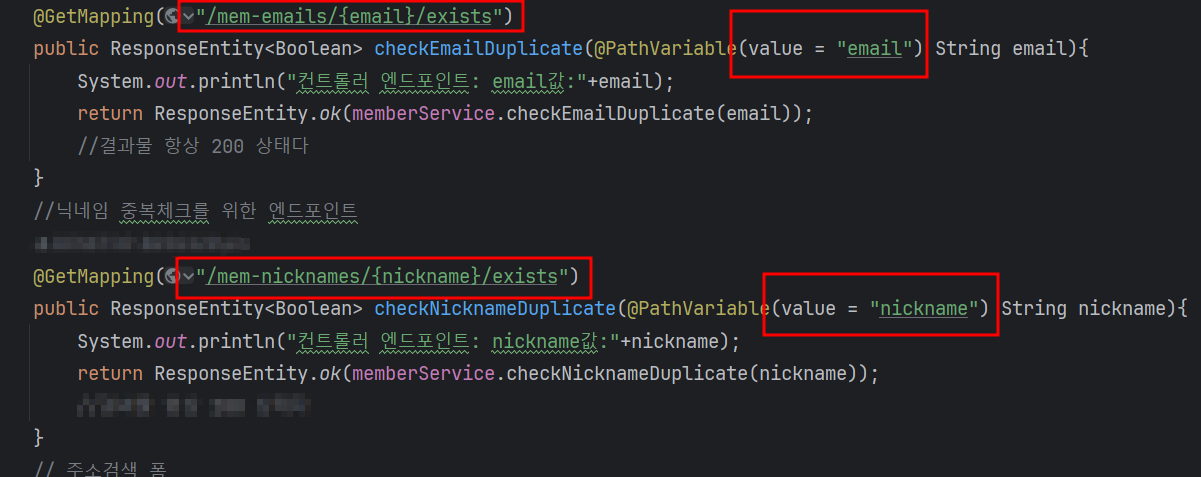 컨트롤러에 미리 중복체크할 엔드포인트를 만들어둔다.