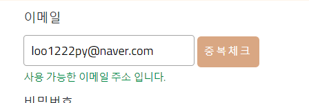 그리고 중복체크를 누르는 순간