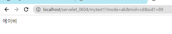 //http://localhost:8080/servelet_0604/mytest1?mode=AB&mid=CD&sid1=89