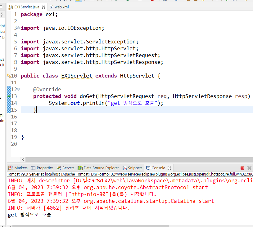 ex1.EX1Servlet class 파일에 내용을 추가